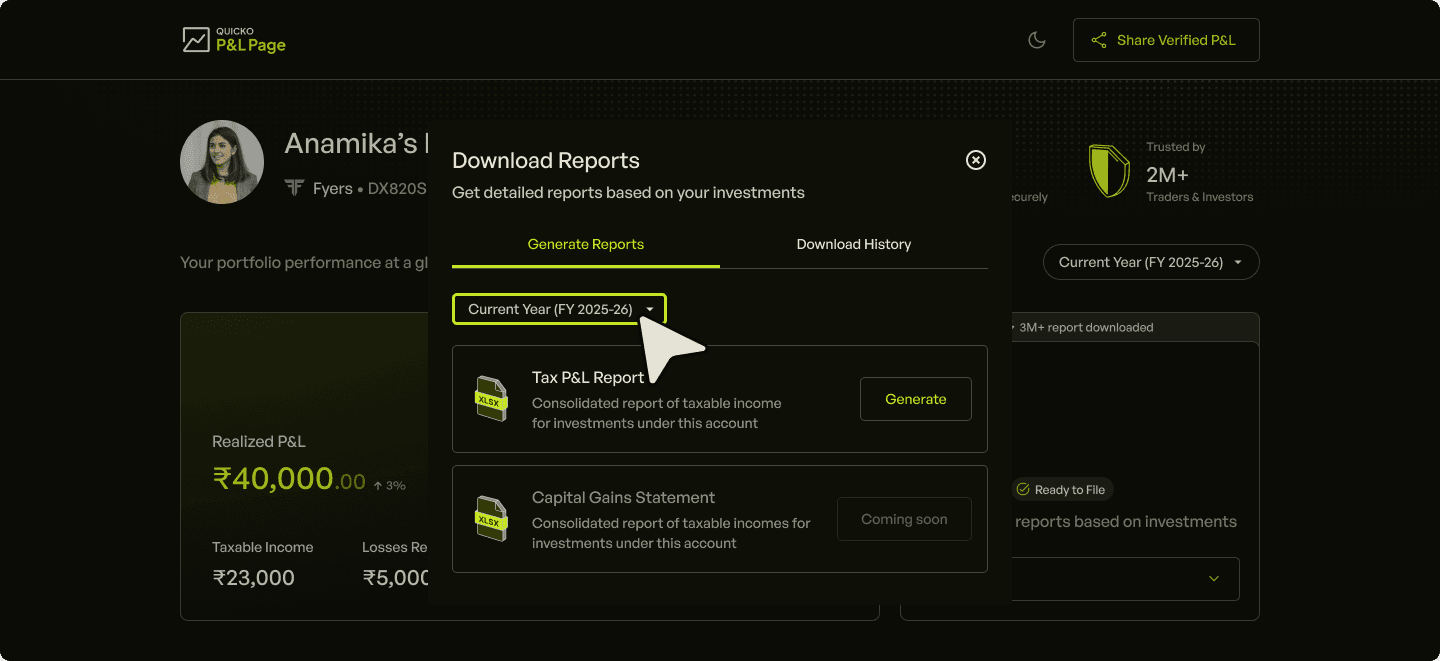Steps to download Fyers Tax P&L report