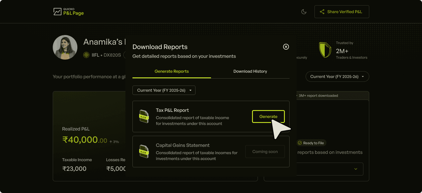 P&L Page is a free tool for investors & traders to connect their IIFL account, sync trades, visualise their P&L and download in-depth Tax P&L Report for the current and previous financial year.